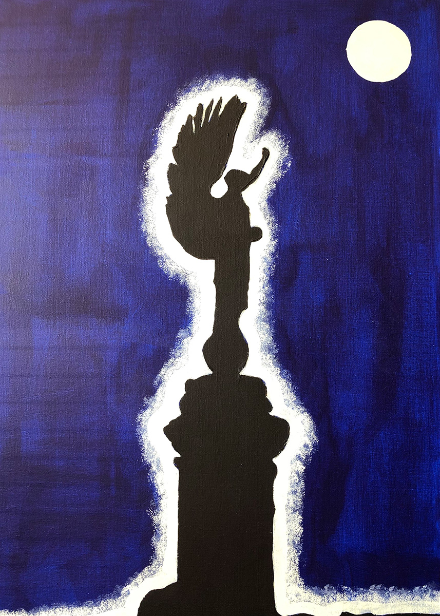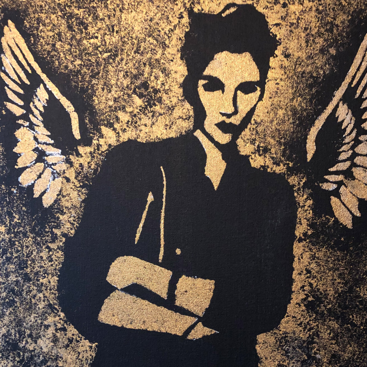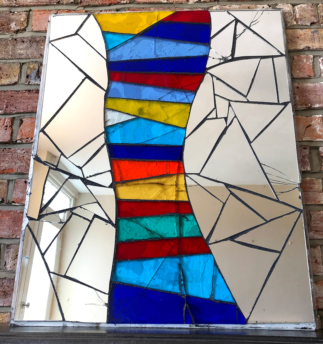 She enjoys working with various mediums, including acrylic paints, stencils and screen printing. She also works with glass, creating colourful mosaics. Most of her work is bold, graphic and colourful.